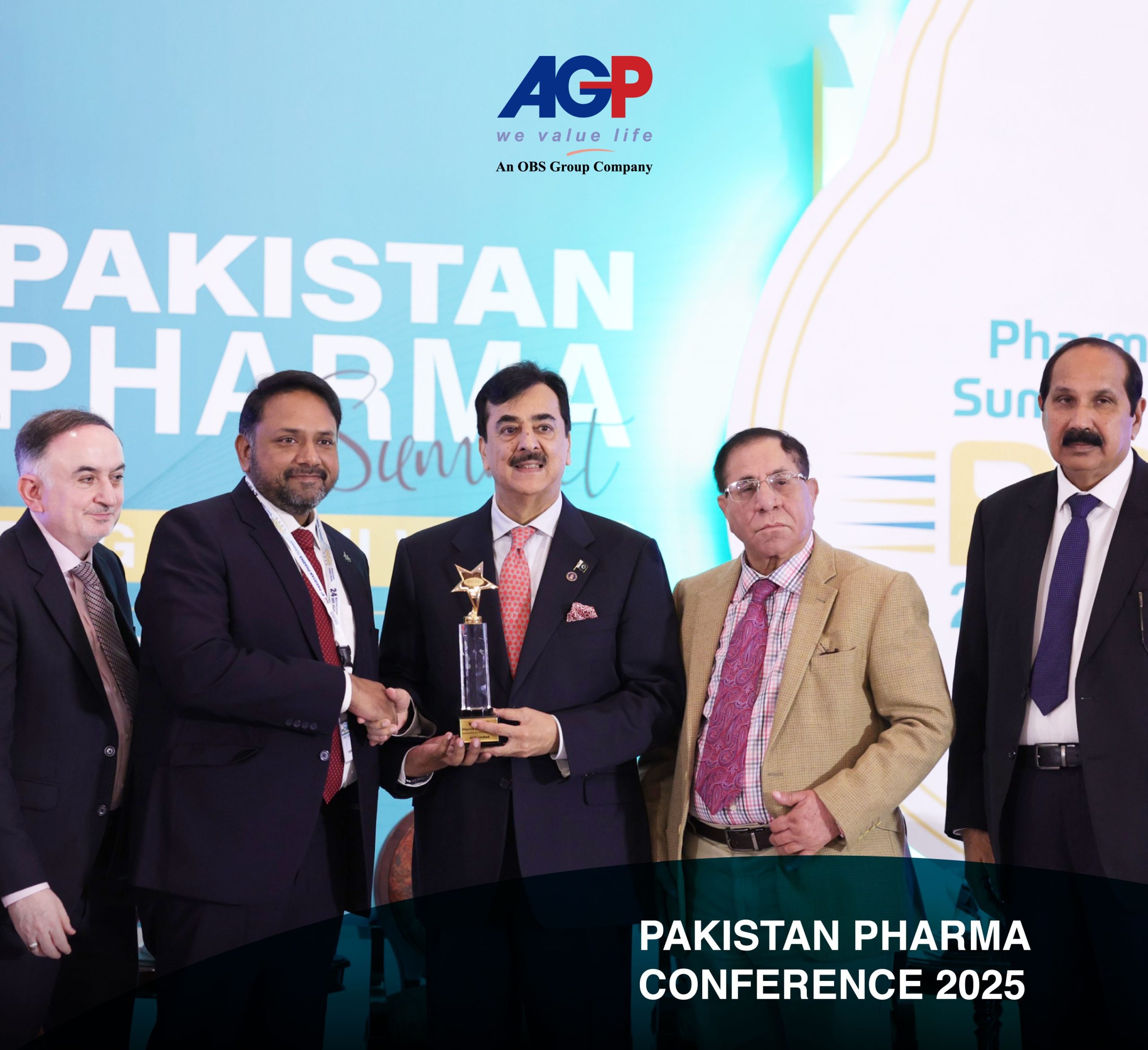 AGP is honored to be recognized at the 8th Pakistan Pharma Summit & PESA Awards 2025, receiving two distinctions — one as a ‘Gold Partner’ and another among the ‘Top Exporters’ of Pakistan Pharmaceutical Manufacturers Association (PPMA) member companies. This achievement reflects AGP’s unwavering commitment to advancing Pakistan’s pharmaceutical industry through quality, innovation and ethical healthcare solutions, while contributing to the nation’s export-led economic growth. At AGP, we remain committed to shaping a healthier and more sustainable future for communities in Pakistan and beyond.